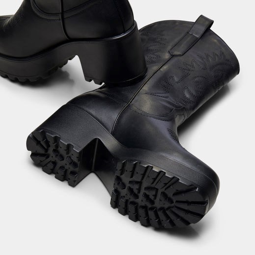 These Koi Footwear Alaric boots are a solid choice for anyone wanting a bold, edgy look. The black leather feels decently durable, though not luxury-grade. They run true to size—I’m a 38 EU and they fit perfectly. The lace-up design adds a nice touch, and the chunky heel provides good stability. While they’re not the most comfortable for all-day wear, they’re perfect for making a statement. Good value for the price point, especially compared to other western-style boots I’ve seen online. Just wish the inner lining was a bit softer.