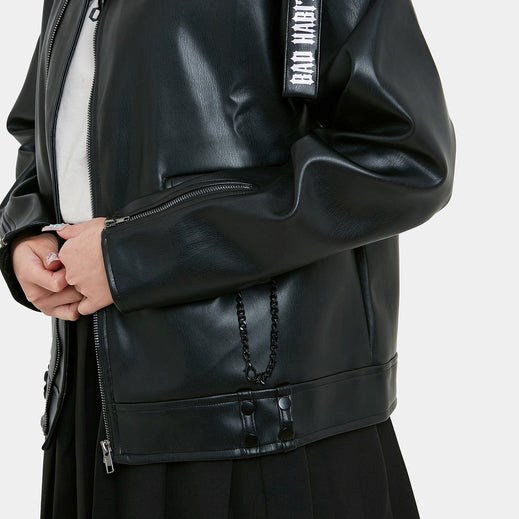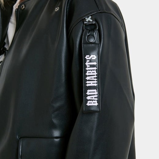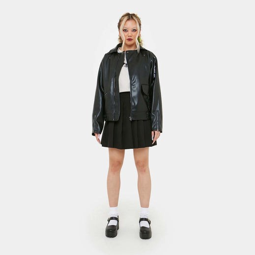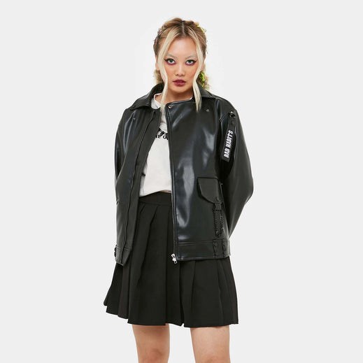 Discover the Koi Footwear Bad Habits vegan leather jacket in black. Stylish, cruelty-free fashion with a perfect fit in sizes XS to XL. Shop now for quality and comfort.