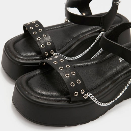 Koi Footwear Darkbloom Black Platform Sandals for Women | DPT-631972