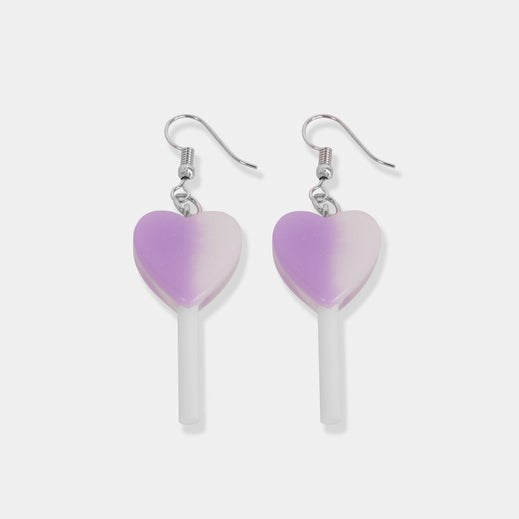 Koi Footwear Sweet Tooth Lollipop earrings in vibrant purple. Stylish and comfortable for everyday wear. Free shipping available.