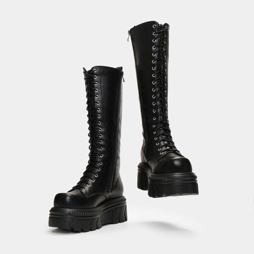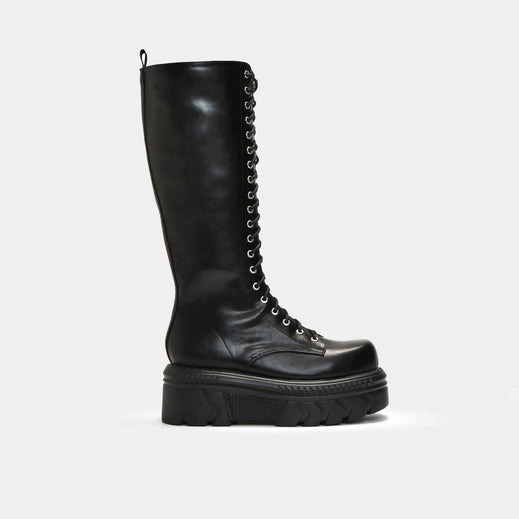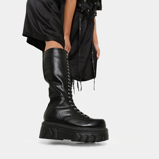 Women’s Black Koi Footwear Alaric Lace-Up Long Stomper Boots