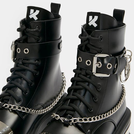 Stylish black platform boots from Koi Footwear offer a perfect blend of fashion and comfort. Durable hardware details and free shipping included.